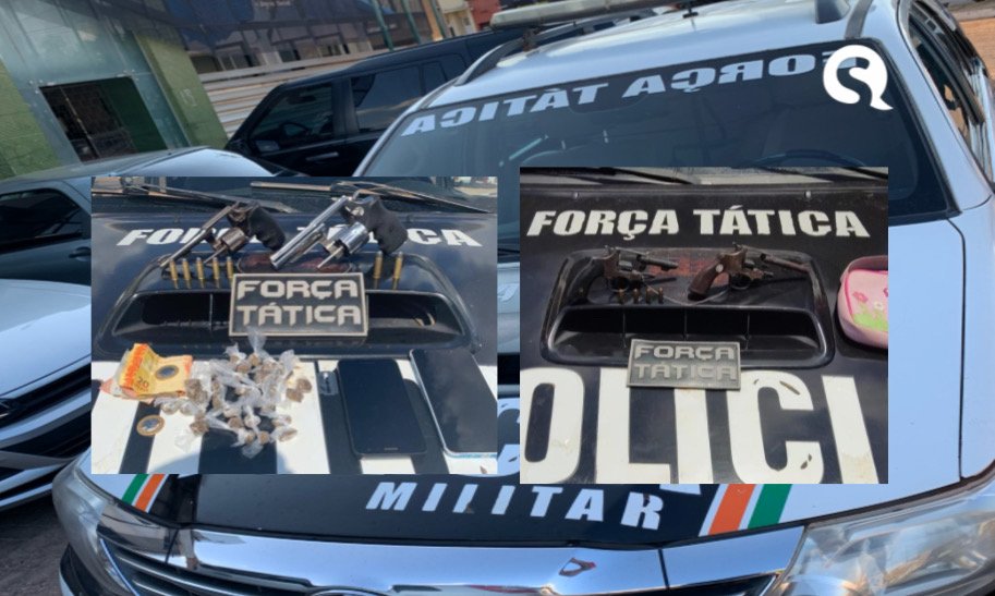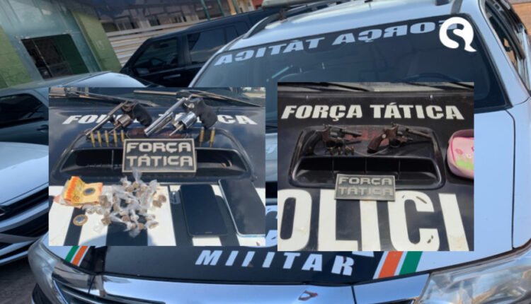 Dois homens foram presos pela Polícia Militar do Ceará (PMCE), por meio da Força Tática do 3º Batalhão Policial Militar, com dois revólveres calibre 38 e 32; 35 trouxinhas de maconha; uma gilete; R$89 em espécie e aparelhos celulares. A ação aconteceu nesta segunda-feira (27), em Tianguá-CE.