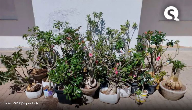 Ao todo, a Polícia localizou 46 unidades de rosa-do-deserto que seriam vendidas nas redes sociais.