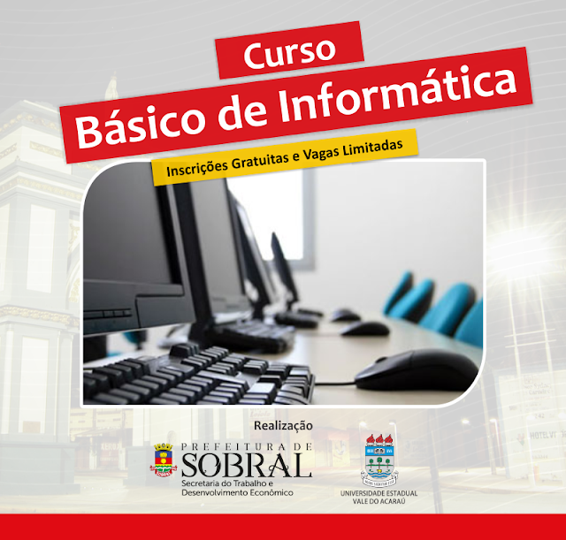Composto por 60 h/a, o curso básico de informática acontecerá no período de 05 de maio à 11 de agosto/2017. As aulas serão às sextas-feiras, das 8 às 12h, no Laboratório de Informática do Curso de Ciências da Computação/ UVA – Campus CIDAO.