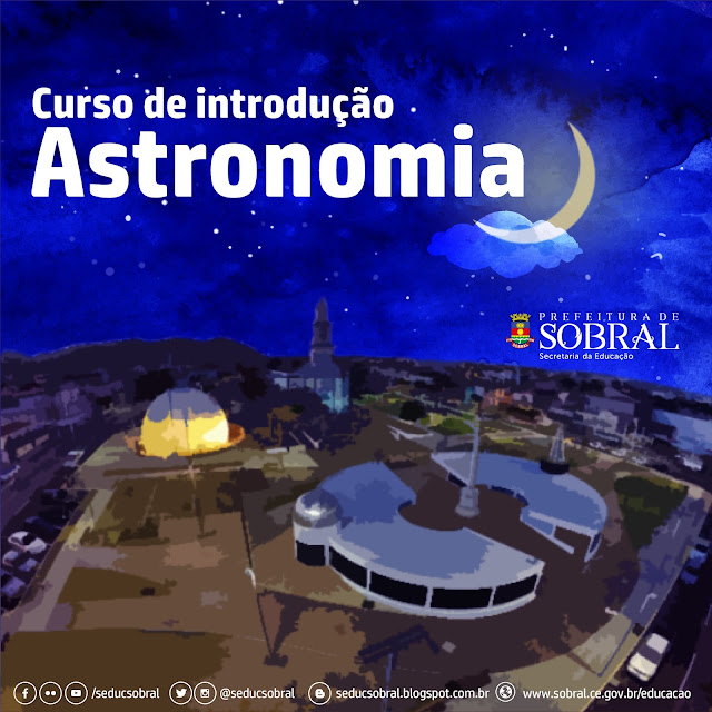 O Planetário de Sobral promoverá curso gratuito de Introdução à Astronomia. São oferecidas 100 vagas e as inscrições poderão ser realizadas de 18 de julho a 20 de agosto, no blog da Secretaria da Educação de Sobral (http://seducsobral.blogspot.com.br).