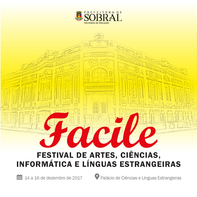 O Palácio de Ciências e Línguas Estrangeiras fará, na quinta-feira (14), a partir das 18h, a abertura do Festival de Artes, Ciências, Informática e Línguas Estrangeiras (Facile). O objetivo é apresentar aos visitantes as atividades desenvolvidas por alunos e professores da instituição durante o ano. Na ocasião, também será realizada a entrega dos certificados para os concludentes dos cursos de Inglês e Espanhol.