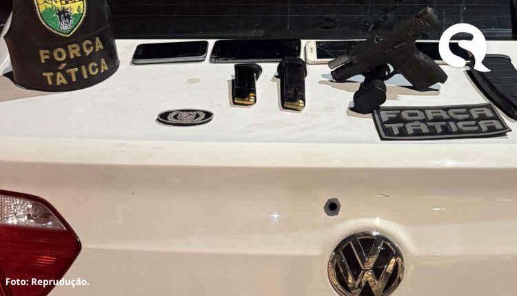 Ação da Polícia Militar resulta em apreensão de arma de fogo, munições e automóvel