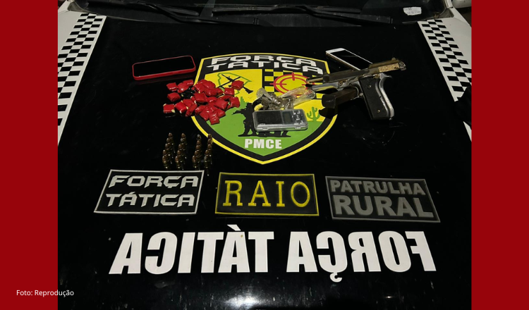 Ação integrada da PMCE resulta em apreensão de arma e drogas, após confronto em Amontada