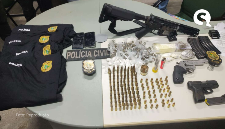 No imóvel, as equipes apreenderam um veículo 4×4 e dentro do automóvel foram apreendidos entorpecentes e munições. Durante as diligências, uma adolescente, de 16 anos, foi apreendida em um imóvel. No local, foram localizados uma pistola, um revólver, munições de três calibres diferentes e carregadores de fuzil.