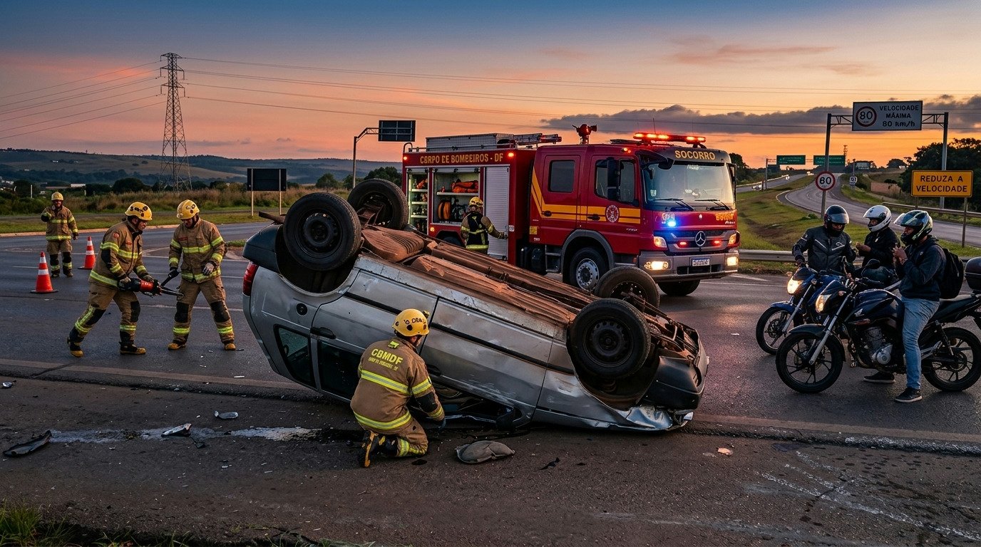 O Corpo de Bombeiros Militar do Distrito Federal (CBMDF) foi acionado por volta das 6h10 para atender à ocorrência. Três viaturas foram mobilizadas para o local, onde os militares realizaram o isolamento da área e a sinalização da rodovia, garantindo a segurança durante o atendimento.