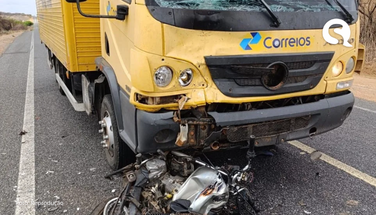 Um acidente envolvendo um caminhão dos Correios e uma moto deixou uma vítima fatal na manhã desta quarta-feira (13/11), na rodovia CE-176, na altura da localidade de Riacho do Mato, no município de Catunda.