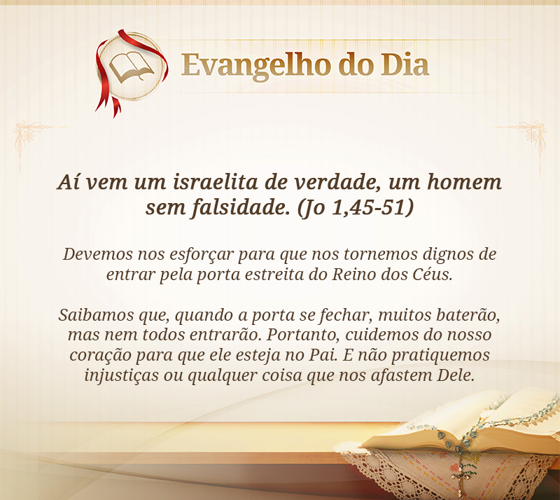 Notícias Aí vem um israelita de verdade, um homem sem falsidade. (Jo 1,45-51) On 24 ago 2015 Compartilhar