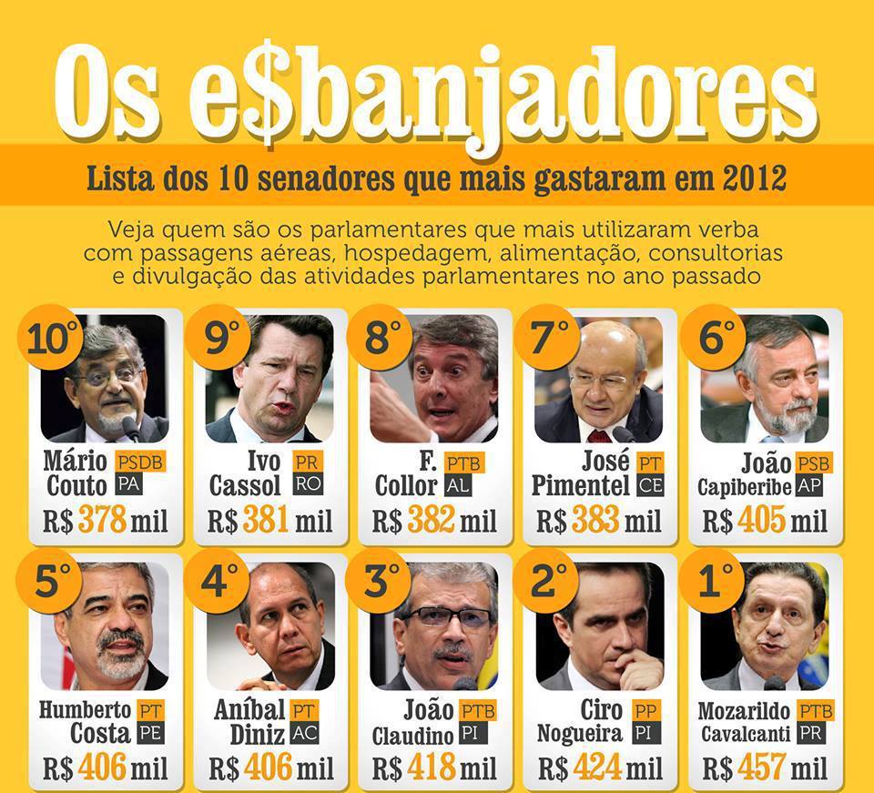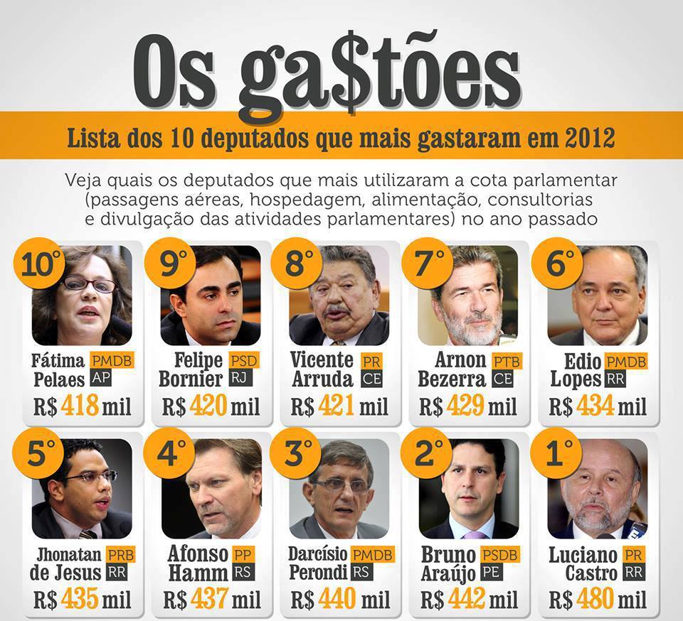 Notícias Algumas informações sobre os gastos dos nossos parlamentares On 06 jul 2013 Mais dados você pode ver em nossa página no Facebook Aqui Compartilhar