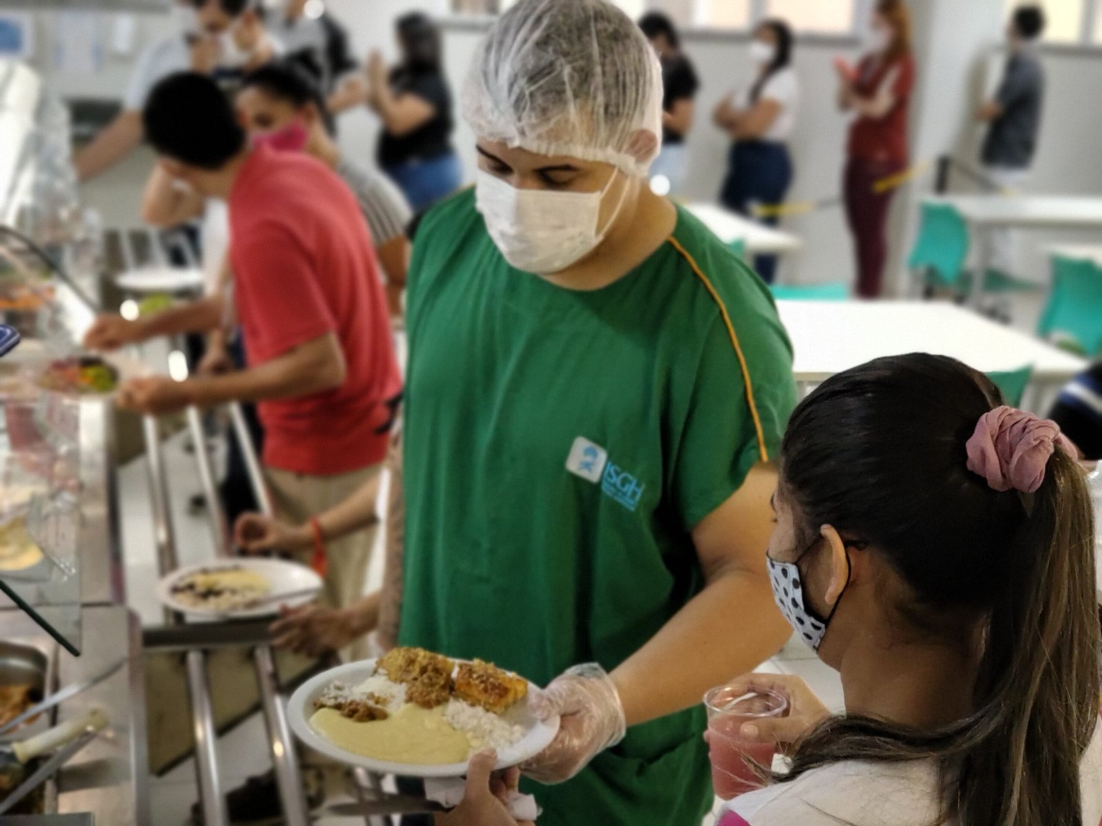 As refeições destinadas aos pacientes são preparadas com restrição de gordura, sal e açúcar, a depender das doenças de base e das comorbidades por indicação médica. Para atrair o olhar e o paladar, a equipe investe em temperos diferenciados; apresentação e temperatura da comida estão dentro dos parâmetros adequados.