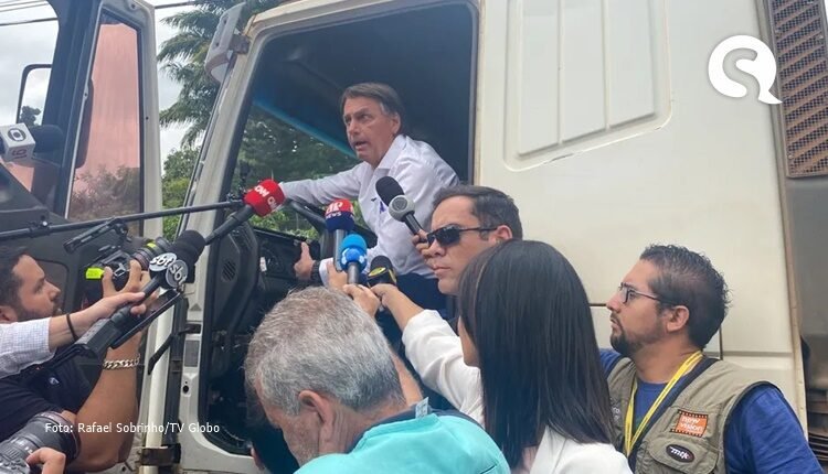 Ao deixar o local, dirigiu um caminhão por um quarteirão e concedeu entrevista a jornalistas. Bolsonaro costuma mencionar com frequência a medida aprovada pelo Congresso Nacional e sancionada pelo governo que limitou o ICMS, um imposto estadual, sobre itens essenciais, entre os quais combustíveis e energia. A medida levou à redução dos preços da gasolina e do diesel, por exemplo.