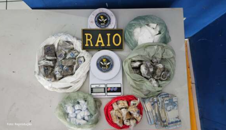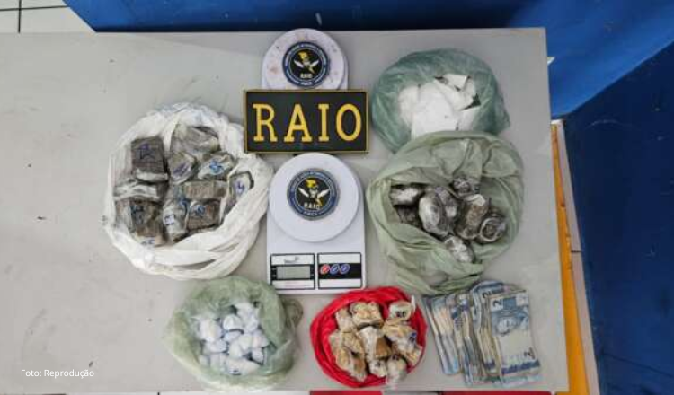 Os policiais militares do Comando de Policiamento de Rondas de Ações Intensivas e Ostensivas (CPRaio) receberam uma denúncia anônima, por volta das 12h, informando que um indivíduo escondendo drogas em um terreno baldio próximo a uma área de mata. Os raianos deram prosseguimento ao atendimento da ocorrência realizando as diligências. No local, foram encontradas 714 g de maconha, 711 g de cocaína e 340 g de crack e duas balanças de precisão.