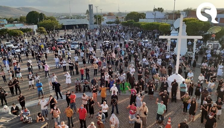 Do lado de fora, todos os presentes utilizavam mascaras e mantiam o distanciamento preventivo; “Apesar do decreto possibilitar a participação de 50% dos fiéis nas celebrações religiosas, enquanto Basílica, optamos em realizar essa tradicional missa dentro da Capela e não campal, como era de costume até antes do início da pandemia. Fizemos isso para evitar aglomeração”, informou a assessoria da Basílica Santuário.