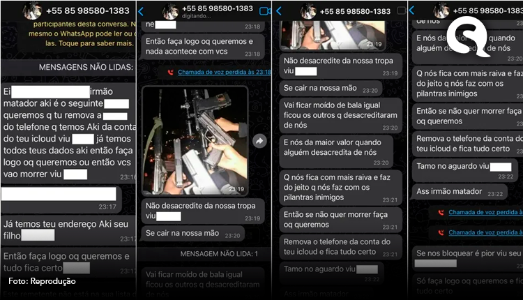 “Comecei a receber mensagens de um cara com uma foto com várias armas dizendo que sabia meu nome, descreveu meu nome completo, que sabia onde eu morava, onde eu trabalho e que teria que liberar o iCloud do celular, apagar tudo, senão ele iria me encher de bala”, falou o homem.