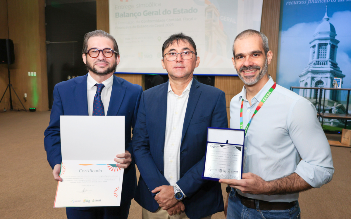 A Agência Reguladora do Estado do Ceará (Arce) obteve a primeira colocação na categoria de Autarquias Estaduais no Ranking de Conformidade da Informação Contábil, Fiscal e Financeira, alcançando um índice de 95,45% de execução orçamentária e recebendo o selo de conformidade “A”. O reconhecimento ocorreu durante a Solenidade de Entrega do Balanço Geral do Estado – Exercício 2025, promovida pela Secretaria da Fazenda do Ceará (Sefaz), realizada em 10 de abril de 2026, no auditório da Secretaria, em Fortaleza.