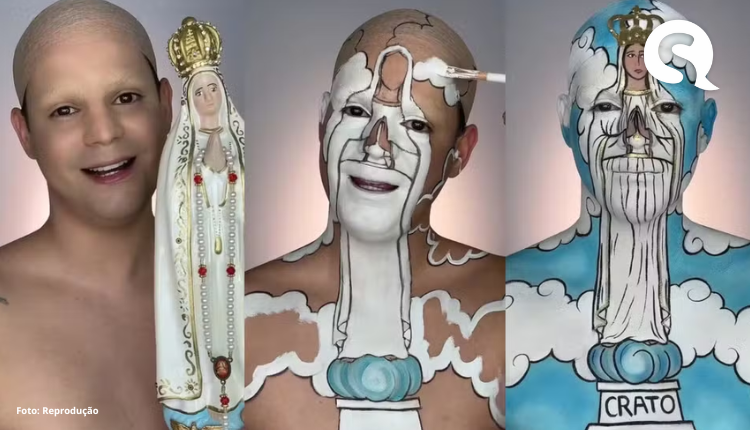 “Quem me acompanha sabe que eu sempre faço maquiagem religiosa. Eu sou muito devoto de Nossa Senhora de Fátima, então nesse dia especial eu sabia que eu tinha que fazer uma homenagem. Eu já fiz homenagem a ela outras vezes e dessa vez eu quis fazer um pouco diferente. O maior desafio pra mim foi só o tempo mesmo, porque eu fiz no mesmo dia da inauguração. Comecei cedinho da manhã e fui terminar lá pras cinco horas da tarde. Foi uma correria pra poder entregar a tempo”, conta ao g1.
