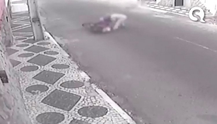 Um homem foi derrubado de uma moto ao tentar realizar um assalto no bairro Domingos Olímpio, em Sobral. Câmeras de segurança do local registraram a ação, que ocorreu na manhã da sexta-feira (27). O suspeito e um outro homem, envolvido na ação, são procurados pela Polícia Civil.