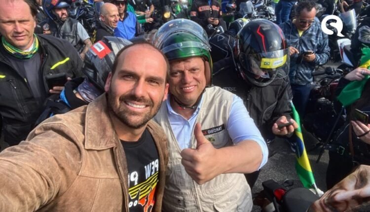 O governo de São Paulo, comandado por João Doria (PSDB), multou o presidente Jair Bolsonaro, o deputado federal Eduardo Bolsonaro (PSL-SP) e o ministro da Infraestrutura, Tarcísio Gomes, pelo não uso de máscara durante motociata realizada na manhã deste sábado, 12, em São Paulo. O valor da multa é de R$ 552,71, para cada um dos autuados.