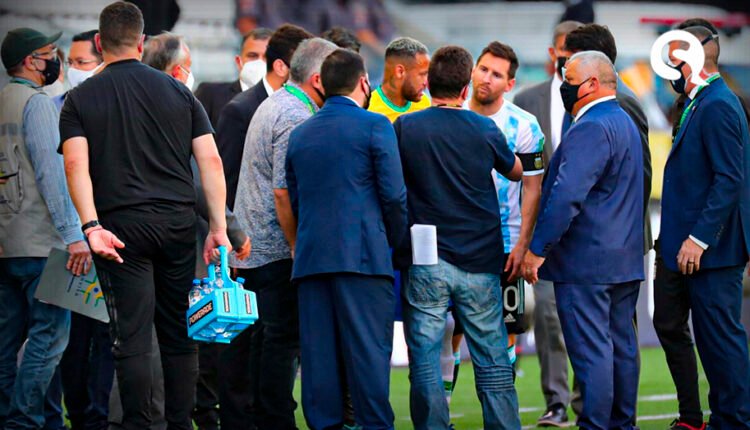 A partida entre Brasil e Argentina realizada neste domingo, 5, na Neo Química Arena e válida pelas Eliminatórias Sul-Americanas da Copa do Mundo, foi interrompida por vigilantes da Agência Nacional de Vigilância Sanitária (Anvisa) e da Polícia Federal) com apenas seis minutos. O motivo da paralisação deve-se à participação de quatro jogadores da seleção argentina, que descumpriram a regra de quarentena para entrar no país. De acordo com a Anvisa, Emiliano Martínez, Emiliano Buendía, Lo Celso e Cristian Romero não poderiam entrar em campo. Antes da partida, o órgão solicitou a deportação dos atletas argentinos. O confronto, ainda assim, foi mantido pela Conmebol.