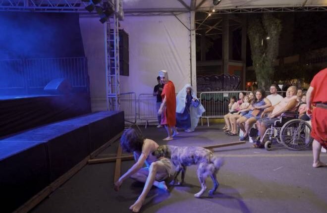 Cadela protagoniza cena emocionante ao defender Jesus durante encenação da Paixão de Cristo no RS