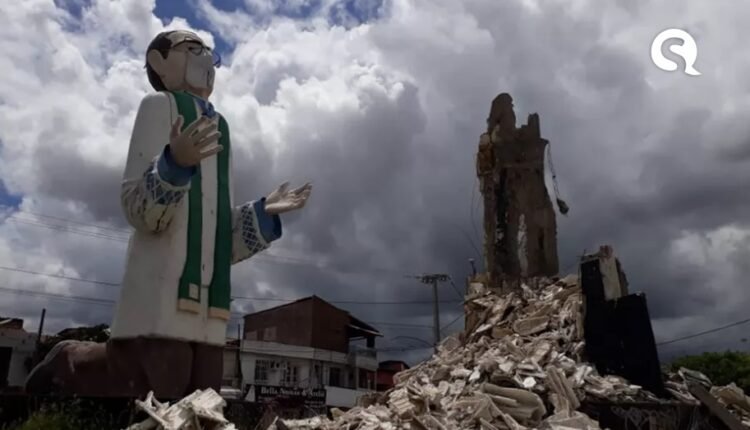 Estátua do Padre Cícero montada em praça na Grande Fortaleza desmorona