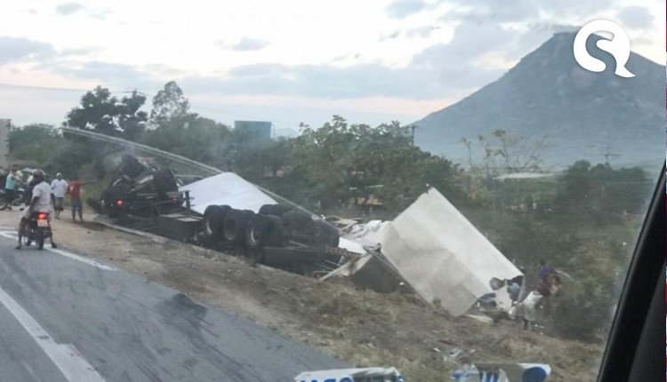 Caminhão tomba, e carga é saqueada em rodovia no interior do Ceará