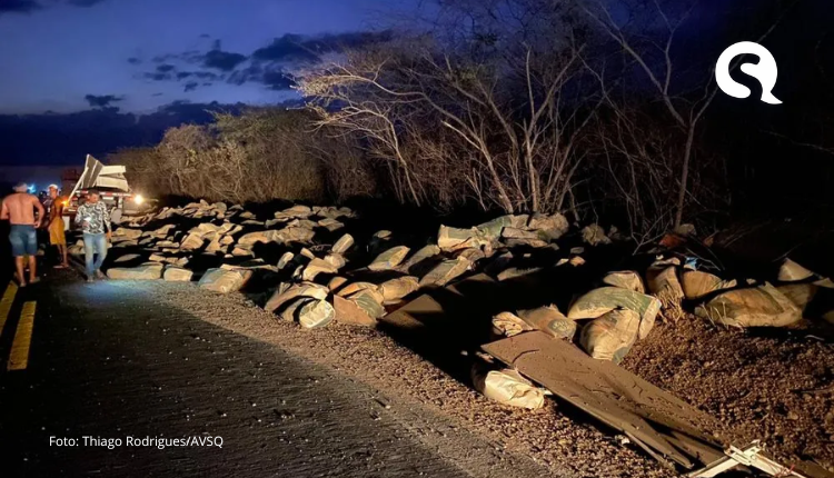 Uma carreta que transportava farelo de trigo tombou na tarde desta quinta-feira (24/10), na rodovia CE-257, entre Santa Quitéria e Hidrolândia, próximo à fazenda Luva. O acidente espalhou mais de mil sacas do resíduo pela lateral da pista.
