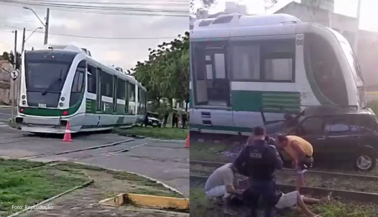 Carro bate em trem do VLT de Sobral; motorista ficou ferido