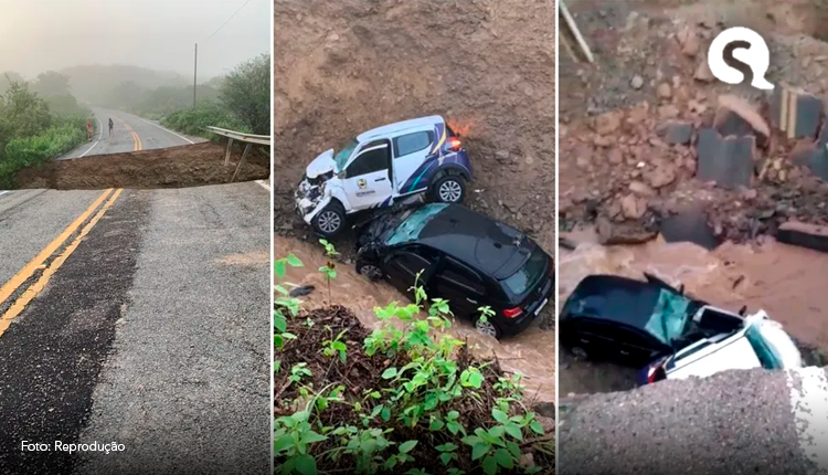 Chuva forte destrói estrada em Mauriti, no Ceará, e carros caem em cratera — Foto: Reprodução
