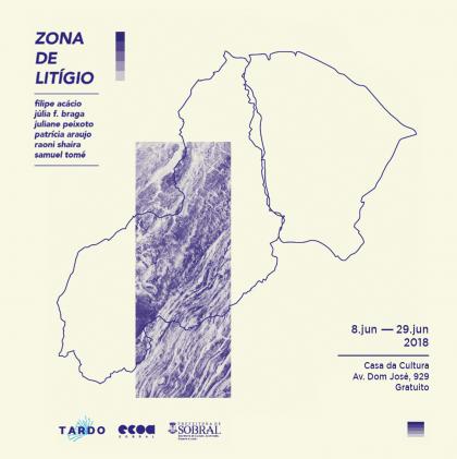 Zona de Litígio, dos artistas Filipe Acácio, Júlia Braga, Juliane Peixoto, Patrícia Araújo, Raoni Shaira e Samuel Tomé, apresenta uma trajetória ficcional sobre uma viagem à fronteira, remete ao que nunca acaba e fala dos limites desenhados estarem num eterno movimento de demarcação e apagamento. Não há fronteiras fixas e quando a poeira da marca feita no chão se levanta, os grãos daqui e os de lá se misturam.