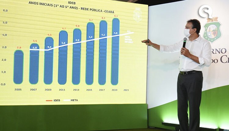 O resultado do Ideb da rede pública cearense foi apresentado pelo governador Camilo Santana durante live nas redes sociais nesta terça-feira (15). O evento contou, ainda, com as participações da vice-governadora Izolda Cela e da secretária da Educação, Eliana Estrela. Ainda de acordo com o principal indicador que avalia a qualidade da educação básica, o Ceará apresenta a melhor evolução nos anos iniciais do Ensino Fundamental (do 1º ao 5º ano) quando comparado às demais unidades da federação. A rede pública alcançou a nota 6,3 em 2019, superando em 1,5 ponto a meta estabelecida pelo Ministério da Educação (MEC).