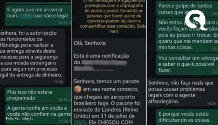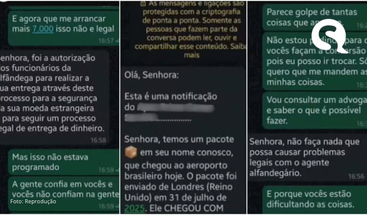 Para que o pacote chegasse até ela, porém, o golpista passou a exigir que a mulher efetuasse pagamentos de taxas e custos de transporte, alegando que eram necessários para a liberação do pacote. A vítima chegou a fazer os pagamentos e, só depois, percebeu que se tratava de um golpe.