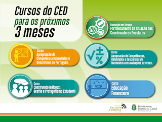 O Centro de Educação a Distância do Ceará (CED), órgão vinculado à Secretaria da Educação do Ceará (Seduc), irá ofertar um conjunto de cursos, nos próximos meses considerando a importância de incentivar a formação e a construção do conhecimentos em diversas áreas. Em breve, o CED abrirá os respectivos editais e seus critérios de seleções. As inscrições e a capacitação serão gratuitas. As formações ocorrerão por meio de Ambiente Virtual de Aprendizagem, onde os estudantes terão acesso aos conteúdos e às atividades.