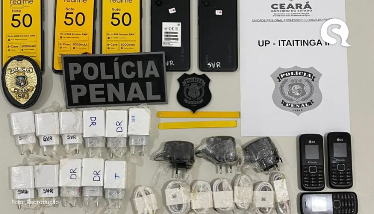 Na manhã desta quarta-feira (21), policiais penais impediram a entrada de celulares, carregadores e outros materiais ilícitos escondidos dentro de uma máquina de costura em presídio no Ceará. O flagrante aconteceu no Unidade Prisional 2, em Itaitinga, e foi realizado durante a entrega semanal de itens fornecidos por familiares dos internos.