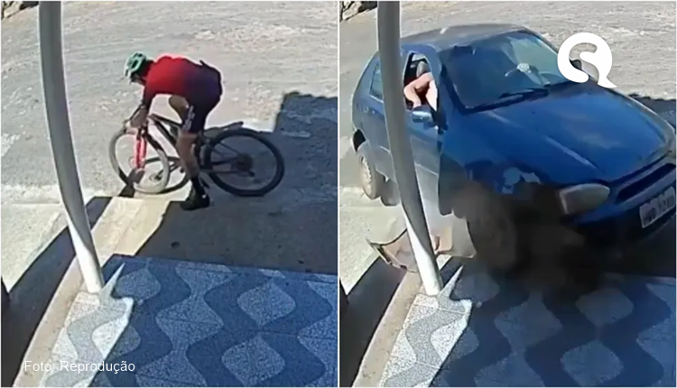 Cinco segundos. Esse foi o tempo que um ciclista levou para sair da calçada de casa e evitar ser atropelado por um carro desgovernado no Bairro Nossa Senhora de Lurdes, em Ubajara, no Ceará, na tarde desta quinta-feira (7).