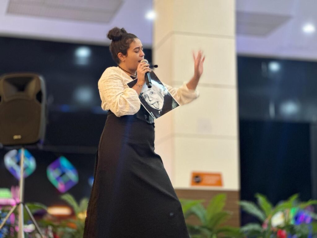 Durante o evento "Parque da Luz no Shopping", do projeto "Sobral nas Estrelas", Larissa "Larittrix" levou ao palco a história da primeira esposa de Einstein, debatendo o papel da mulher na ciência de forma lúdica para crianças e adultos.