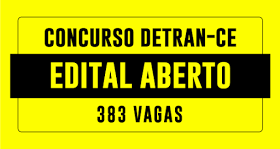 As inscrições para o concurso público do Detran-CE continuam até  às 23horas 59min do próximo dia 24, última sexta-feira do mês. São 383 vagas ofertadas, para níveis superior (33), médio (300) e fundamental (50).  As inscrições podem ser feitasAQUI.