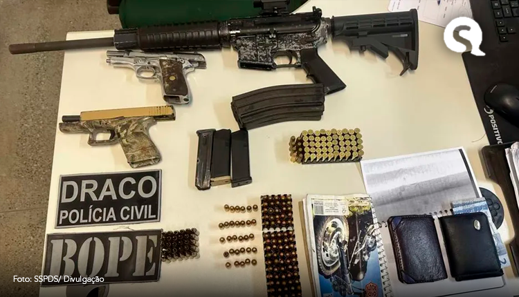 Izaias Maciel da Costa, o “Mucuim”, foi preso na companhia do irmão Iago Maciel da Costa. A polícia apreendeu com a dupla duas pistolas, um fuzil, centenas de munições de calibres variados, dois carros roubados e sinais identificadores adulterados.