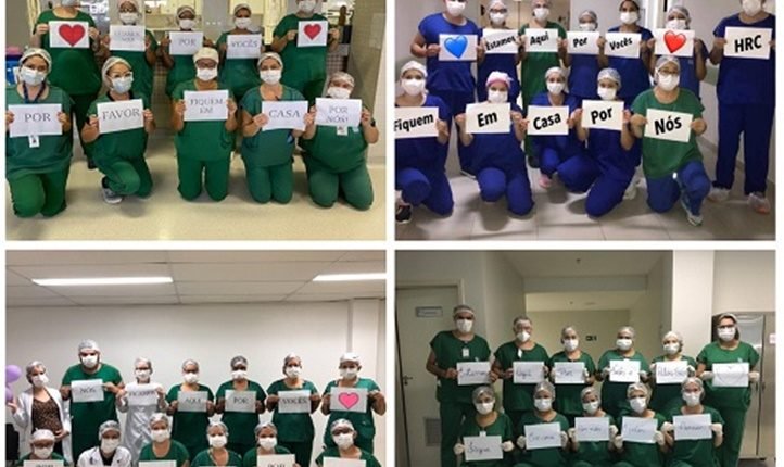 No Hospital Regional Norte (HRN), referência na Região Norte para casos graves do Covid-19, as equipes da UTI Neonatal, Emergência Pediátrica e Adulta, Clínica Pediátrica, Laboratório, Imagem e Central de Transportes deram o recado à população: “Estamos aqui por vocês. Por favor, fiquem em casa por nós”.