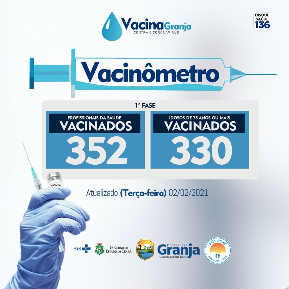 A prefeitura de Granja aplicou 352 doses da vacina em profissionais da área da Saúde e 330 doses foram aplicadas em idosos de 75 anos ou mais, que estão incluídos no grupo 1 de risco. Os idosos foram vacinados em casa por equipes de profissionais da saúde.