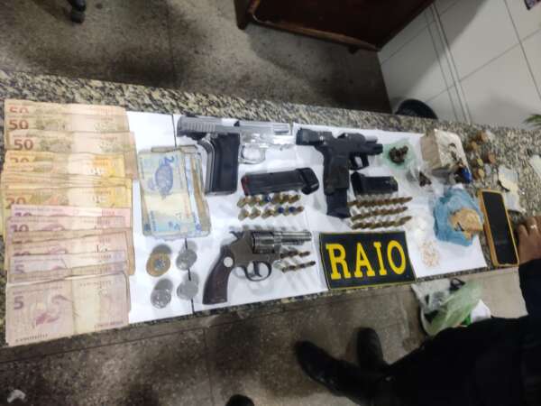 Três armas, sendo uma pistola .9mm, uma .40 e um revólver .32, além de 40 munições, 278g de maconha, três pés de maconha, 8,9g de cocaína, 75g de crack, R$ 516,85 em espécie, embalagens para a droga, uma caderneta com anotações e dois aparelhos celulares foi o saldo de apreensões durante uma ação do Comando de Policiamento de Rondas de Ações Intensivas e Ostensivas (CPRAIO) da Polícia Militar do Ceará (PMCE), na noite de terça-feira, 3, em Tianguá. Quatro indivíduos foram presos durante a ocorrência.