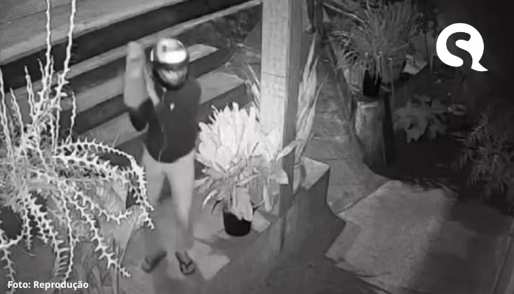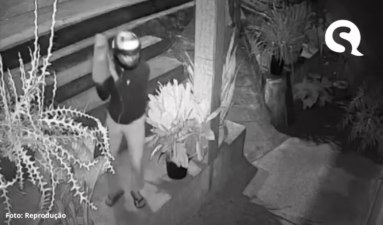 Uma câmera de segurança registrou o momento que os dois suspeitos chegaram ao local e um deles arremessou a pedra contra a fachada da casa. Logo em seguida, um dos indivíduos anunciou que seria um assalto.