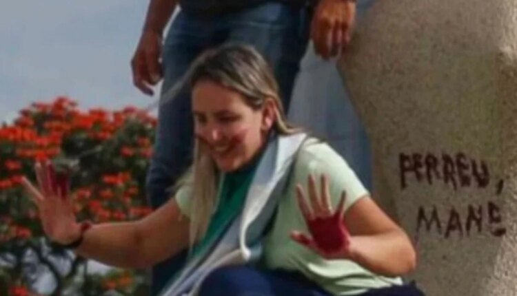 Durante uma entrevista, Débora do Batom explicou o significado por trás da frase inscrita na estátua. Ela afirmou que a decisão de escrever a frase ocorreu de forma espontânea, em meio à movimentação no local, e que se arrependeu logo depois.