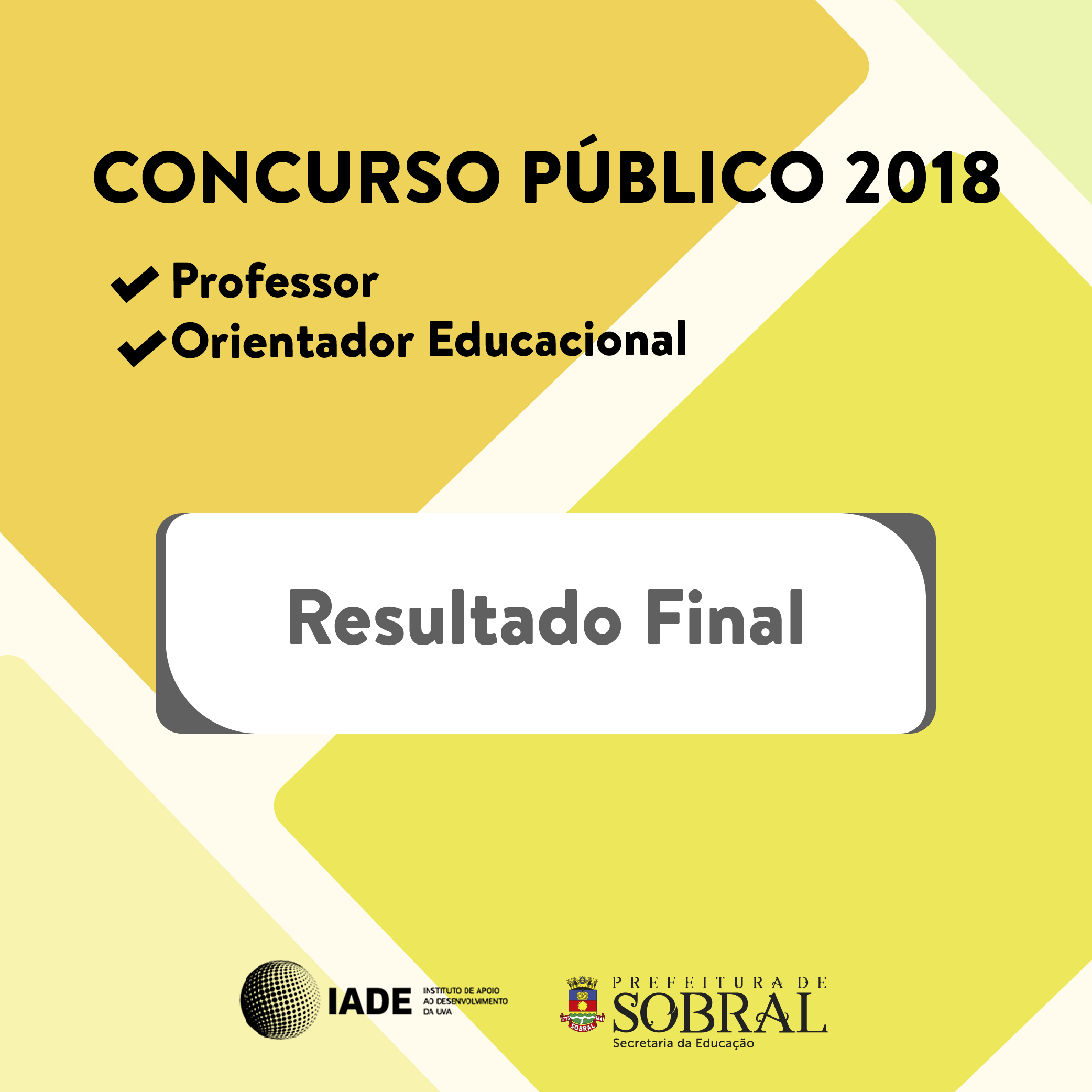 O Instituto de Apoio ao Desenvolvimento da Universidade Estadual Vale do Acaraú divulgou, nesta segunda-feira (18/02), o resultado final do concurso público para professor e orientador educacional da rede pública municipal de Sobral. O resultado final será homologado pela Prefeitura e os candidatos aprovados devem aguardar a convocação, que será publicada no Diário Oficial do Município.