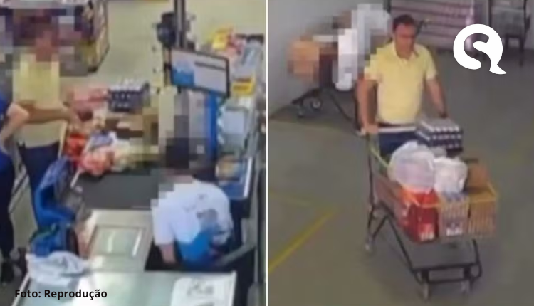 - após efetuar o pagamento de parte das compras, o empresário ia até o segundo carrinho, colocava as sacolas dos produtos pagos em cima dos outros produtos que ele havia deixado no local e saía como se tivesse pago por tudo o que pegou.