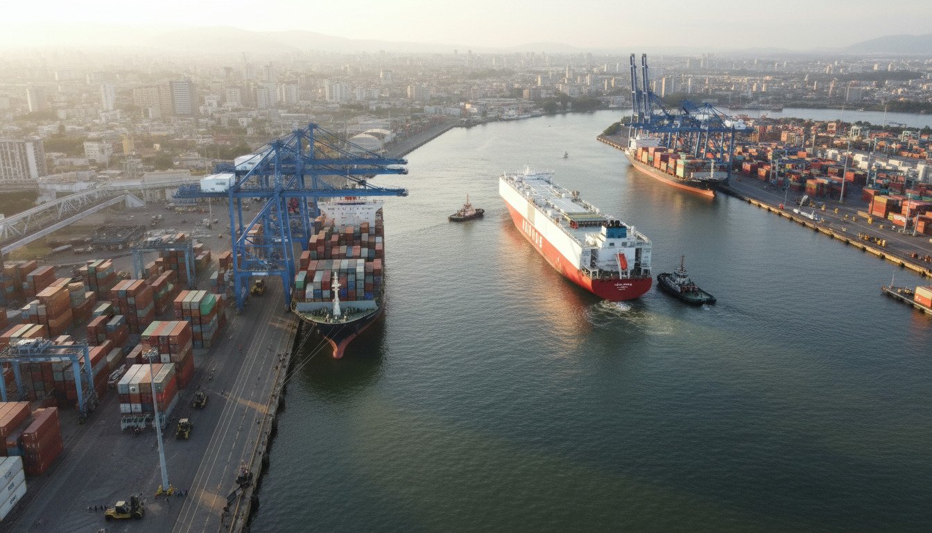 A profundidade, que deveria ser mantida em 14 metros para assegurar a eficiência das operações, caiu para aproximadamente 13,5 metros. Essa restrição física impacta diretamente a capacidade de atracação de navios de maior porte, especialmente os cargueiros de contêineres que compõem o fluxo principal dos dois complexos portuários.
