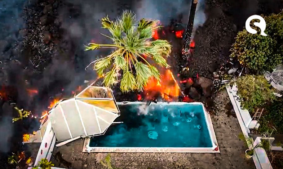 Drone flagra momento em que lava do vulcão Cumbre Vieja atinge piscinas em La Palma