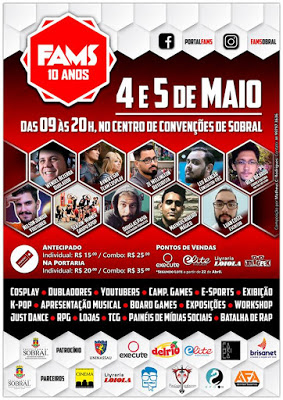 O dublador Wendell Bezerra famoso pela sua voz em desenhos famosos como Goku do anime Dragon Ball, Bob Esponja e também dubla Jackie Chan no desenho animado As aventuras de Jackie Chan, é uma das atrações confirmadas para o FAMS 2019, que comemora sua décima edição nos dias 4 e 5 de Maio, no Centro de Convenções de Sobral. Os ingressos já estão a venda na Execute, Cursos Elite e na Livraria Loiola.