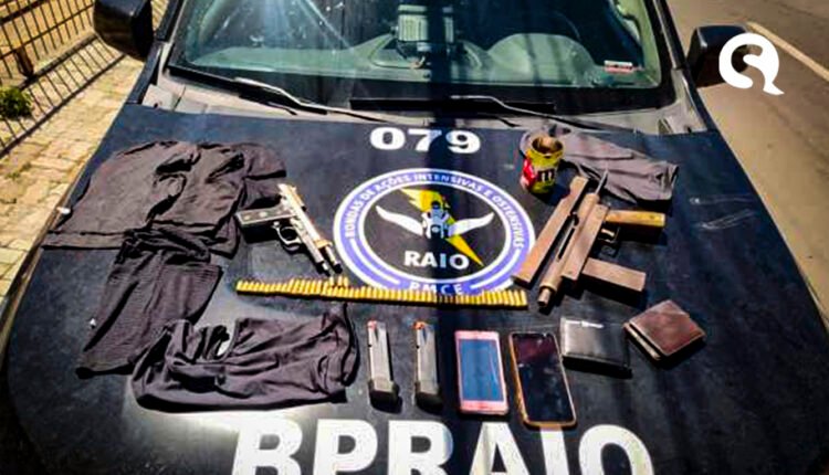 Uma equipe do Comando de Policiamento de Rondas e Ações Intensivas e Ostensivas (CPRaio) da Polícia Militar do Ceará (PMCE) prendeu, em flagrante, uma dupla suspeita de roubar duas motocicletas, na tarde dessa segunda-feira (3), no bairro Terrenos Novos, no município de Sobral – Área Integrada de Segurança 14 (AIS 14) do Estado. Além da prisão, foram apreendidas uma submetralhadora artesanal, uma pistola calibre .40, munições, dois carregadores, cartões de crédito e motocicletas.