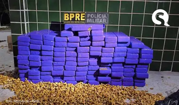 A Polícia Militar do Ceará (PMCE) prendeu, na madrugada de sábado (23), dois homens suspeitos de associação e tráfico de drogas em Santa Quitéria, no interior do Estado. A dupla foi flagrada transportando 113,5 quilos de maconha escondidos em sacos de castanha de caju dentro de um veículo.