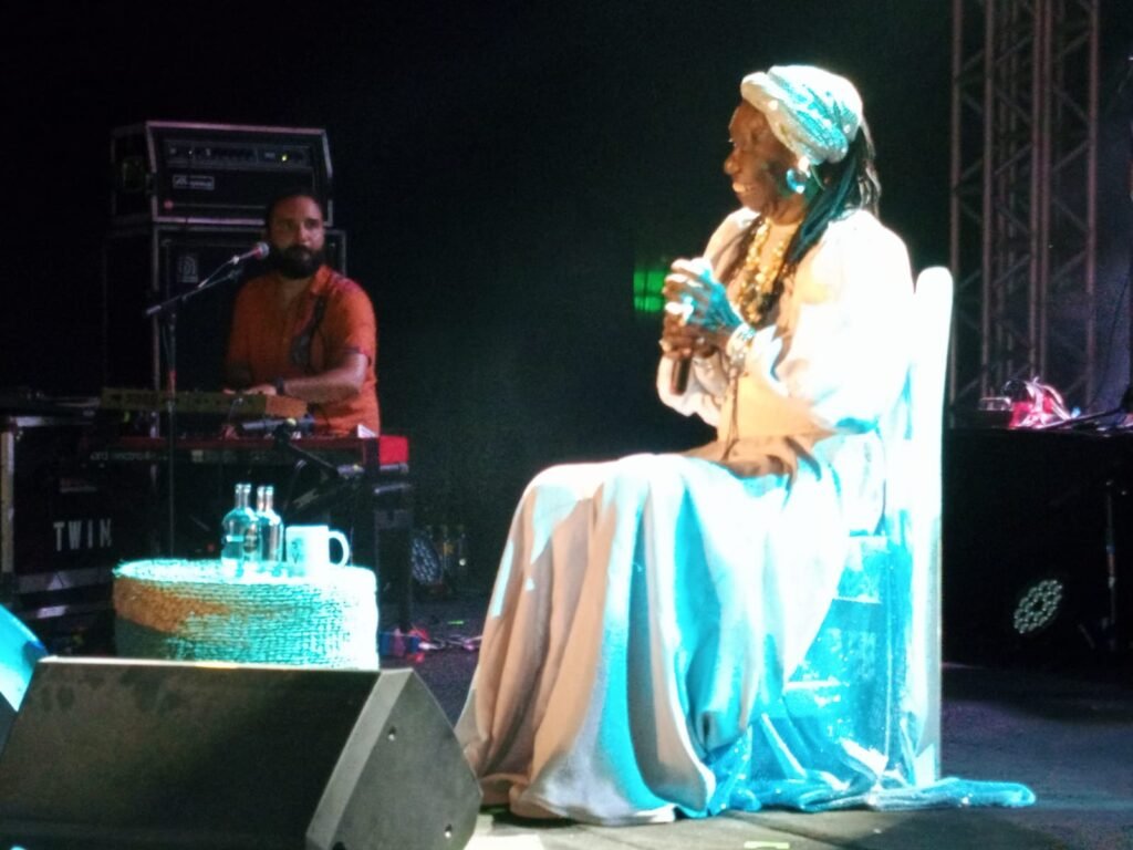 .”Meu São Jorge” deu sequência ao encontro entre a grande dama e a plateia reunida em Jeri, incluindo muita gente de Fortaleza que se deslocou para o festival. “E nessa ida quando saio pra trabalhar, eu levo flores pra São Jorge e Iemanjá”. E todo mundo cantou junto “Mamãe Oxum”, com Lia distribuindo simpatia, com direito até a muitas brincadeiras ao longo do show, e com energia de sobra em “Machado de Xangô”. e na clássica “Minha ciranda”: “Minha ciranda não é minha só, ela é de todos nós, ela é de todos nós. A melodia principal quem guia é a primeira voz, é a primeira voz. Pra se dançar ciranda, juntamos mão com mão, juntamos mão com mão. Formando uma roda, cantando uma canção, cantando uma canção”.